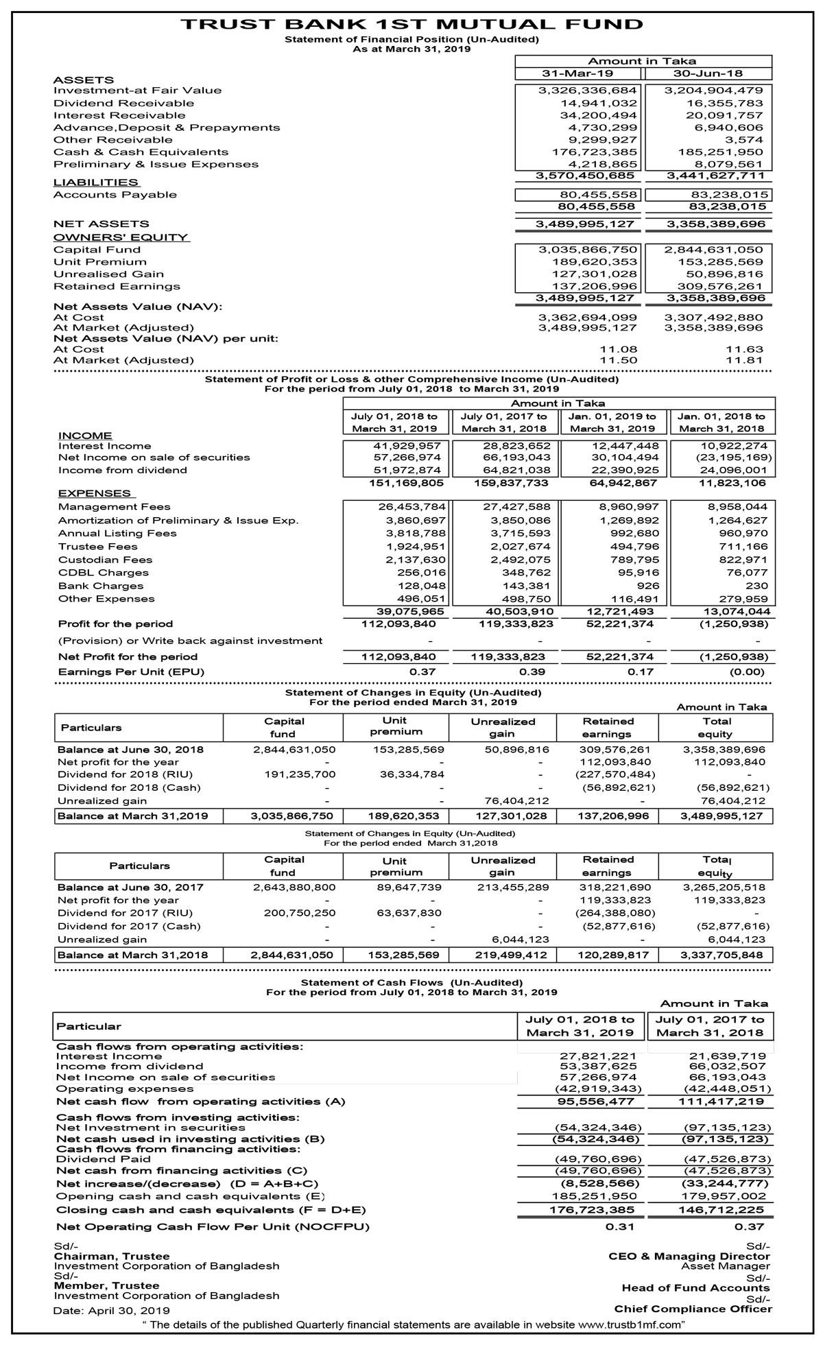 Price Sensitive Information of Trust Bank 1st Mutual Fund