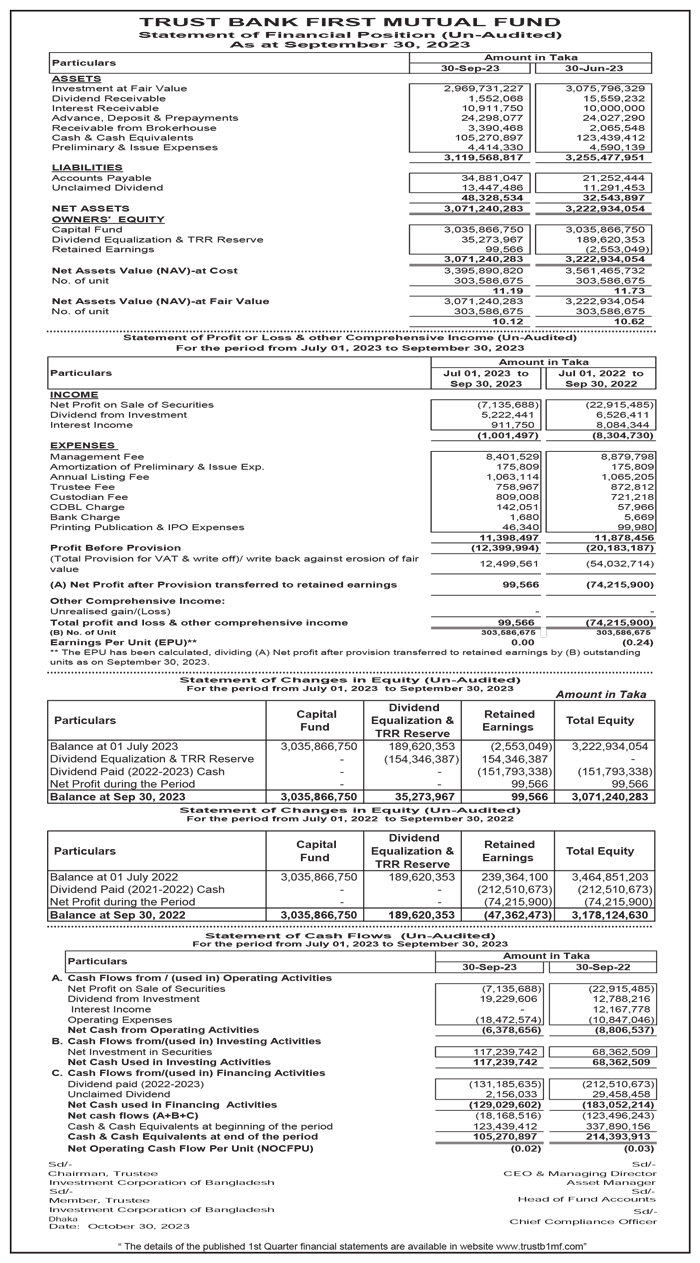 Price Sensitive Information of Trust Bank 1st Mutual Fund