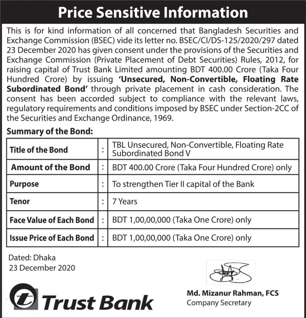 Q3 (Un-audited) Financial Statements of Trust Bank Limited