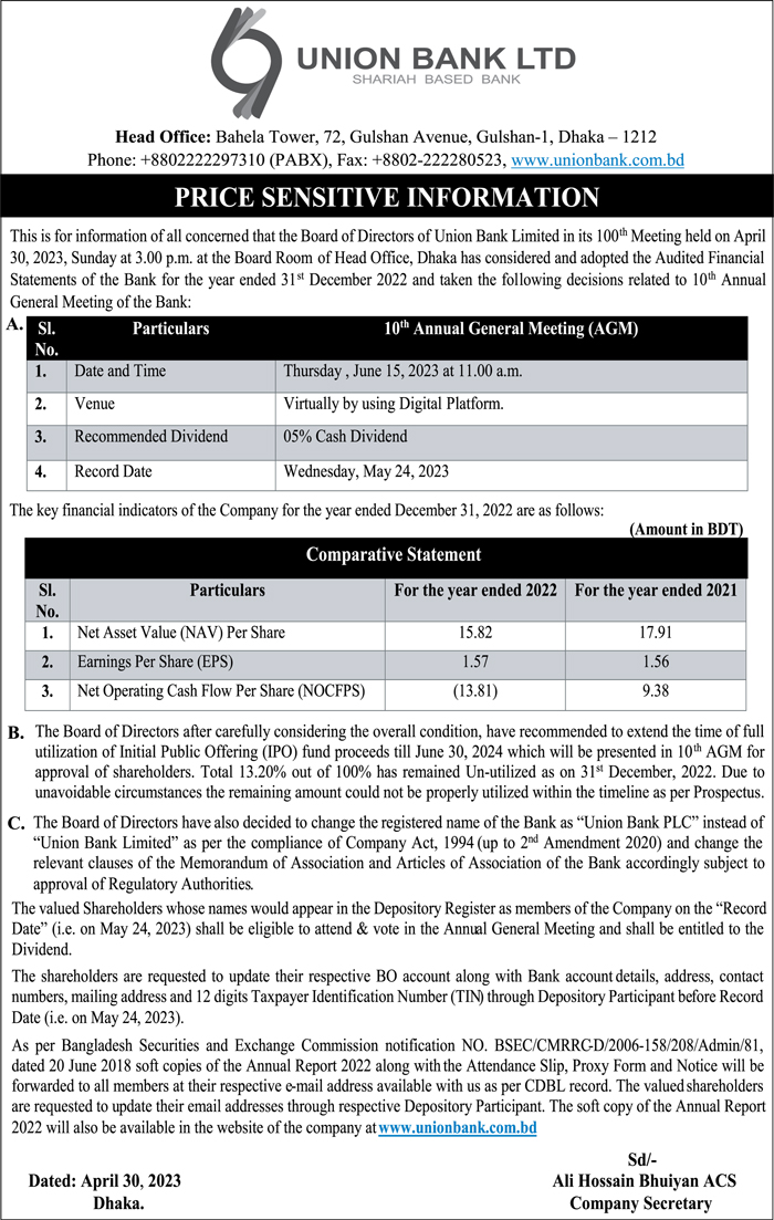 Q1 Financial Statements (Un-audited) of Union Bank Limited