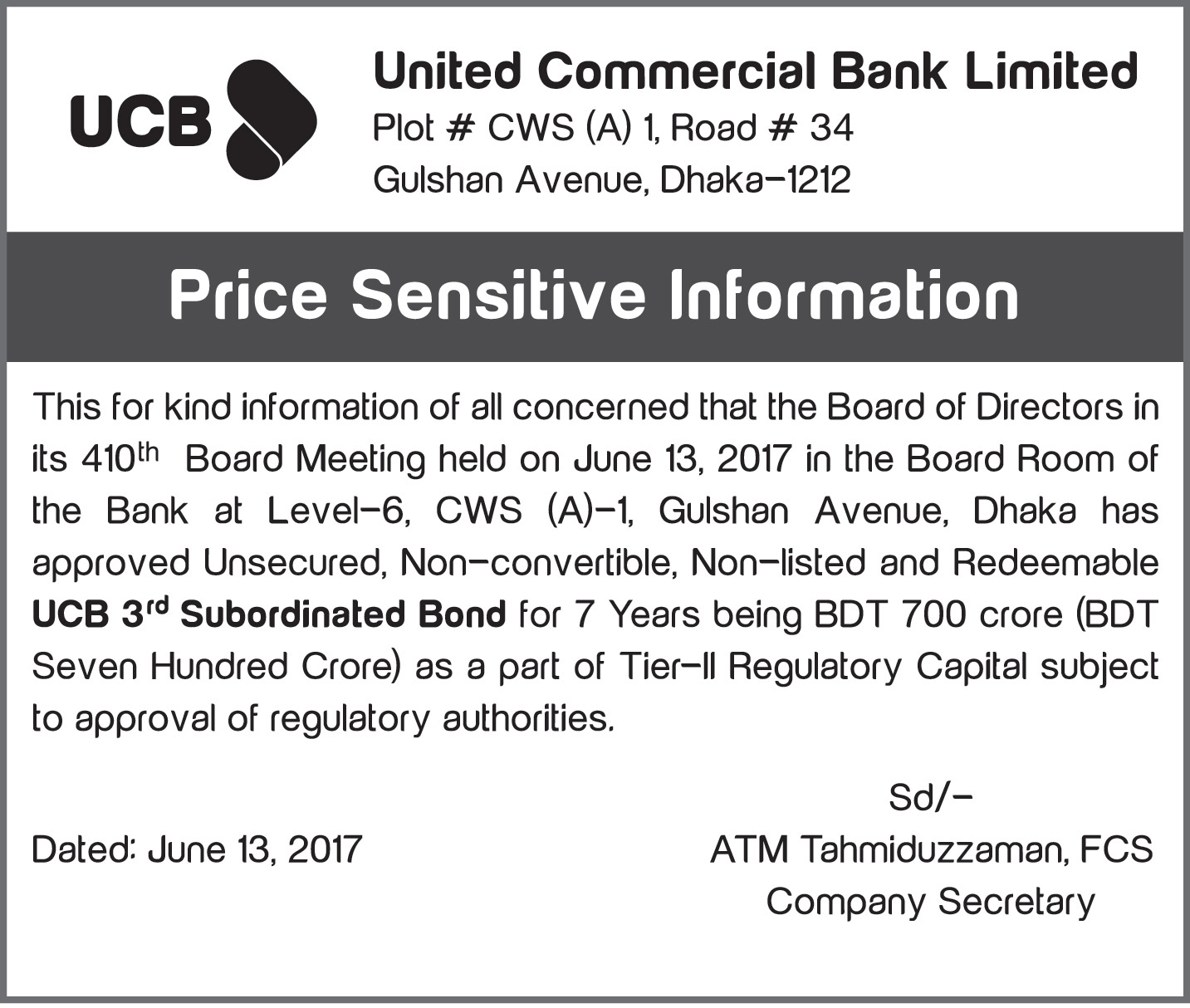 Price Sensitive Information of United Commercial Bank PLC (UCB)
