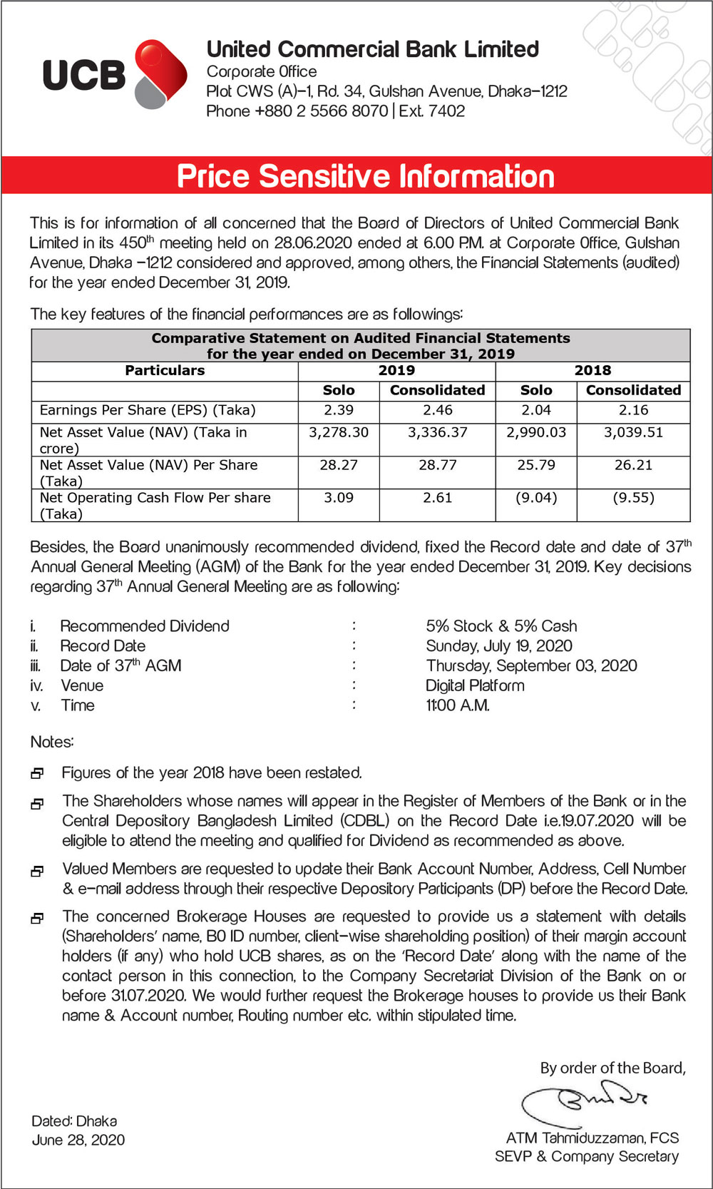 Price Sensitive Information of United Commercial Bank PLC (UCB)