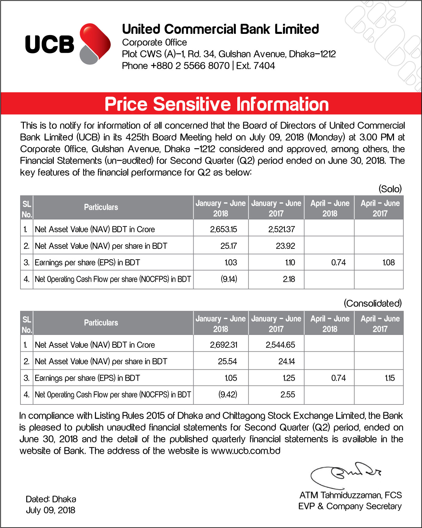 Price Sensitive Information of United Commercial Bank PLC (UCB)