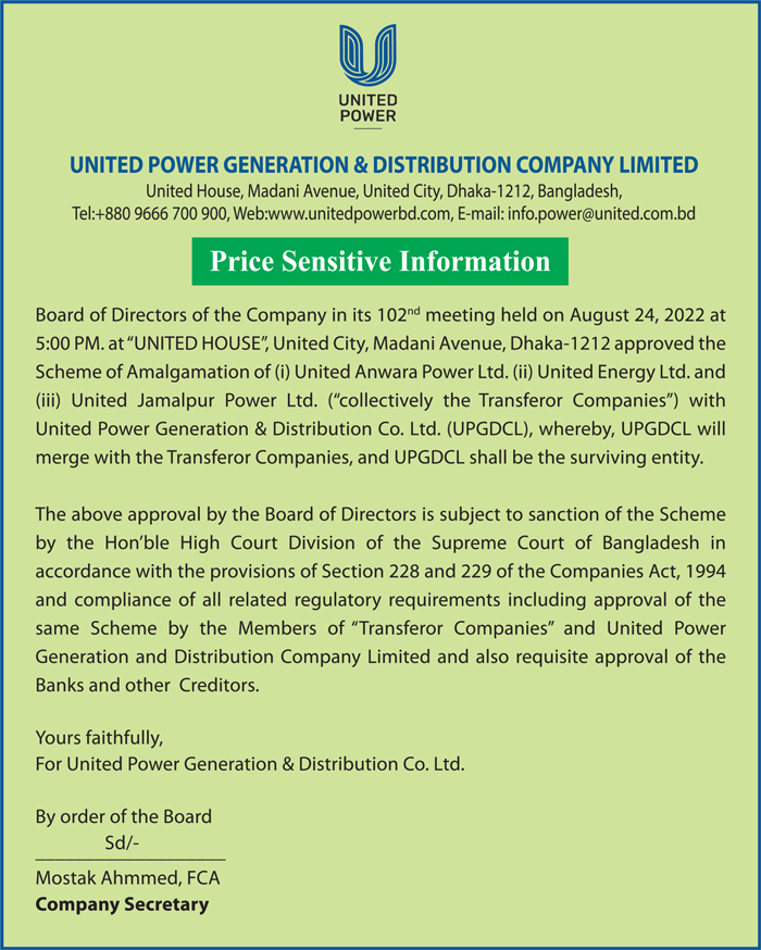 Price Sensitive Information of United Power Generation & Distribution Company Ltd