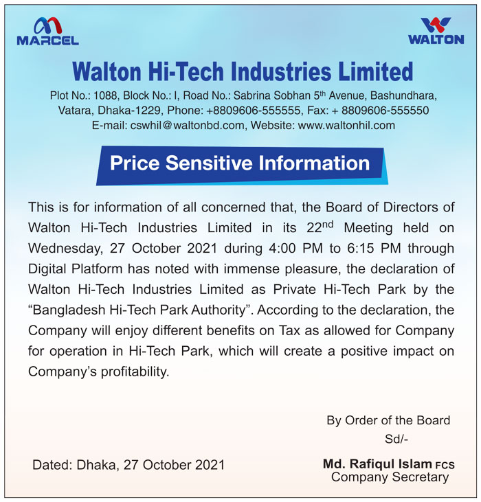 Price Sensitive Information of Walton Hi-Tech Industries Ltd