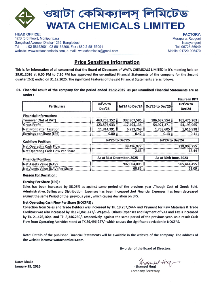 Notice of the 42nd AGM of Wata Chemicals Limited