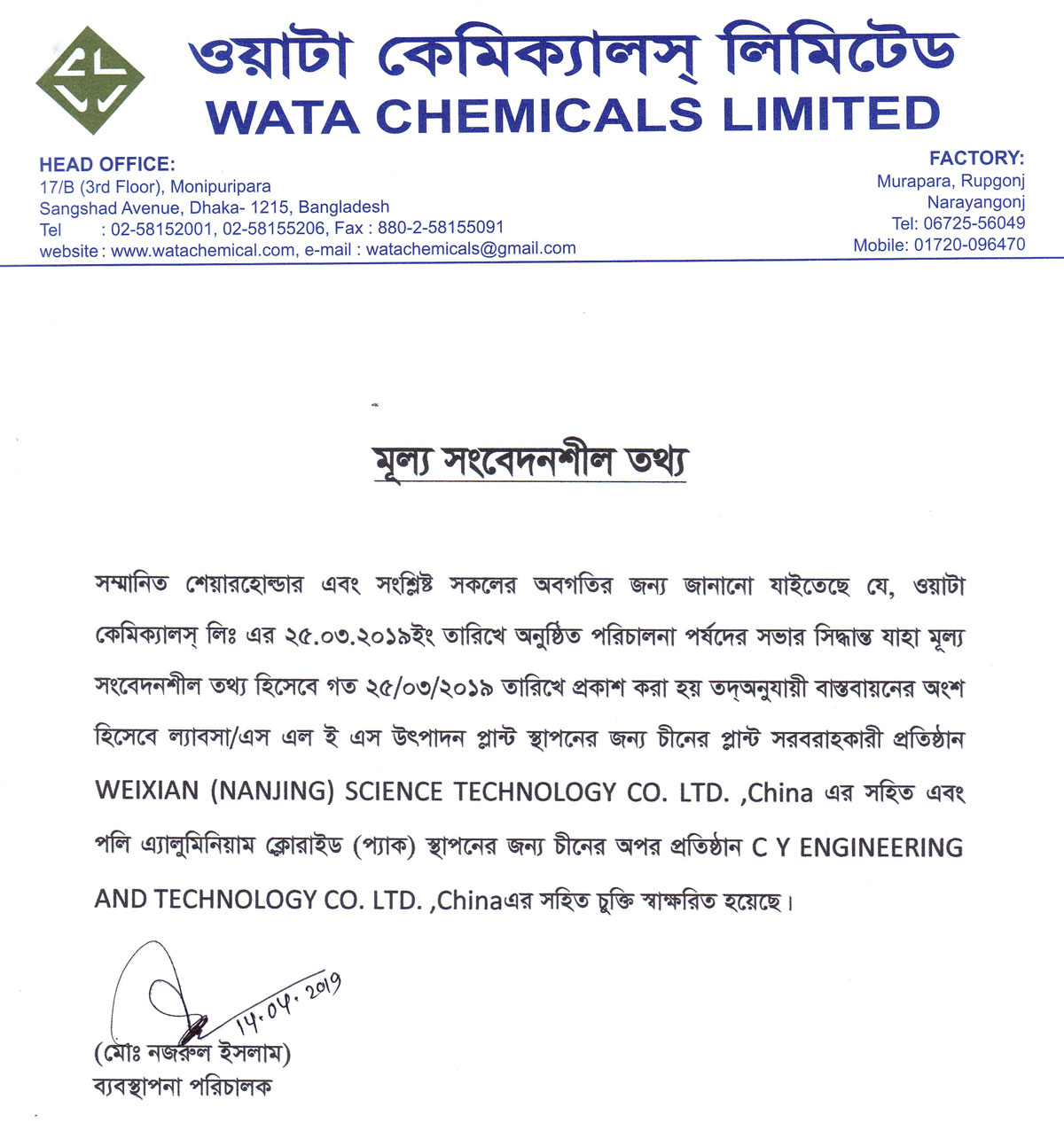 Notice of the 42nd AGM of Wata Chemicals Limited