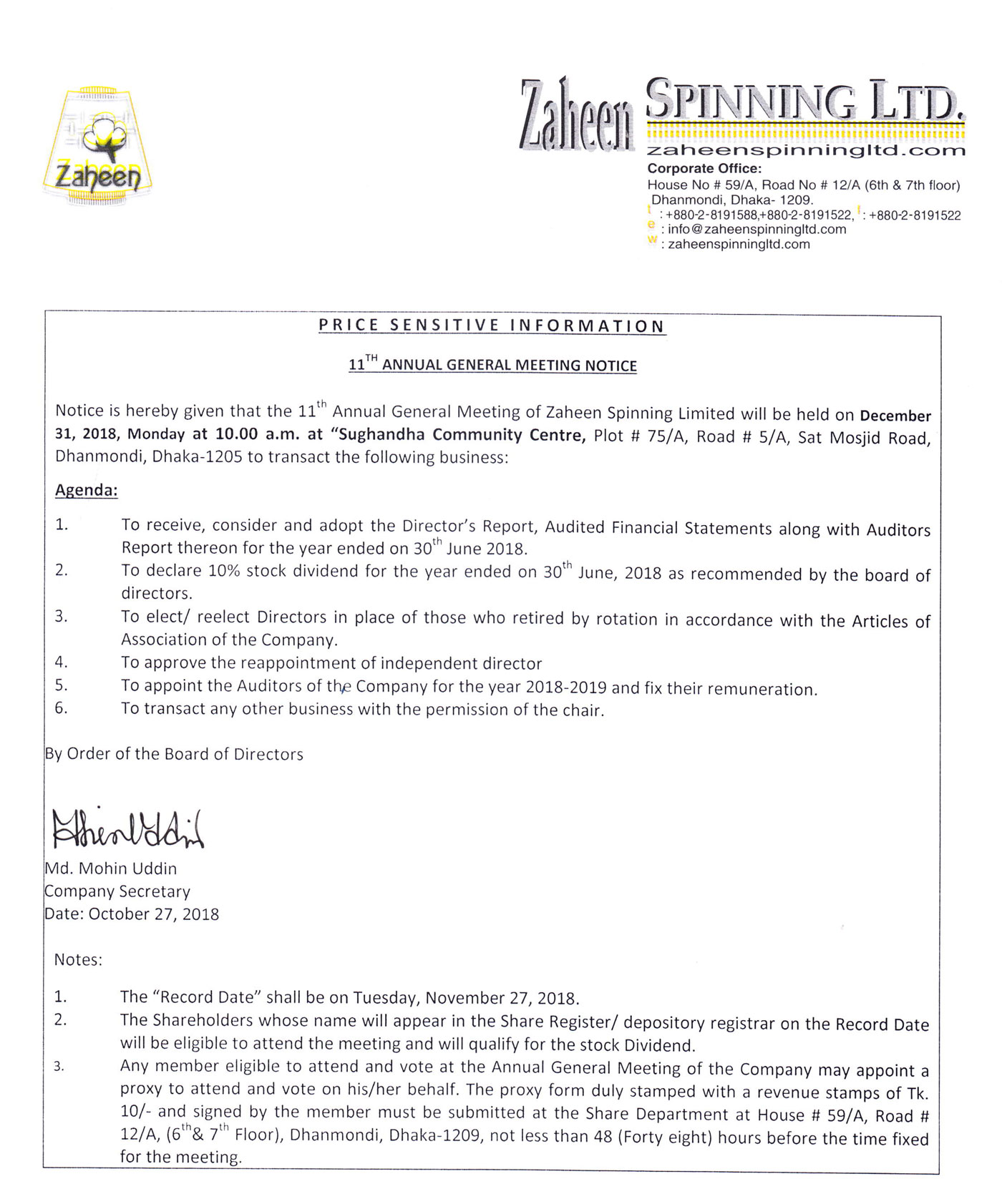 Notice of the 47th AGM of Monno Agro & General Machinery Limited