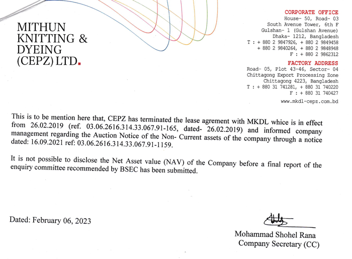 Price Sensitive Information of Mithun Knitting & Dyeing (CEPZ) Ltd.