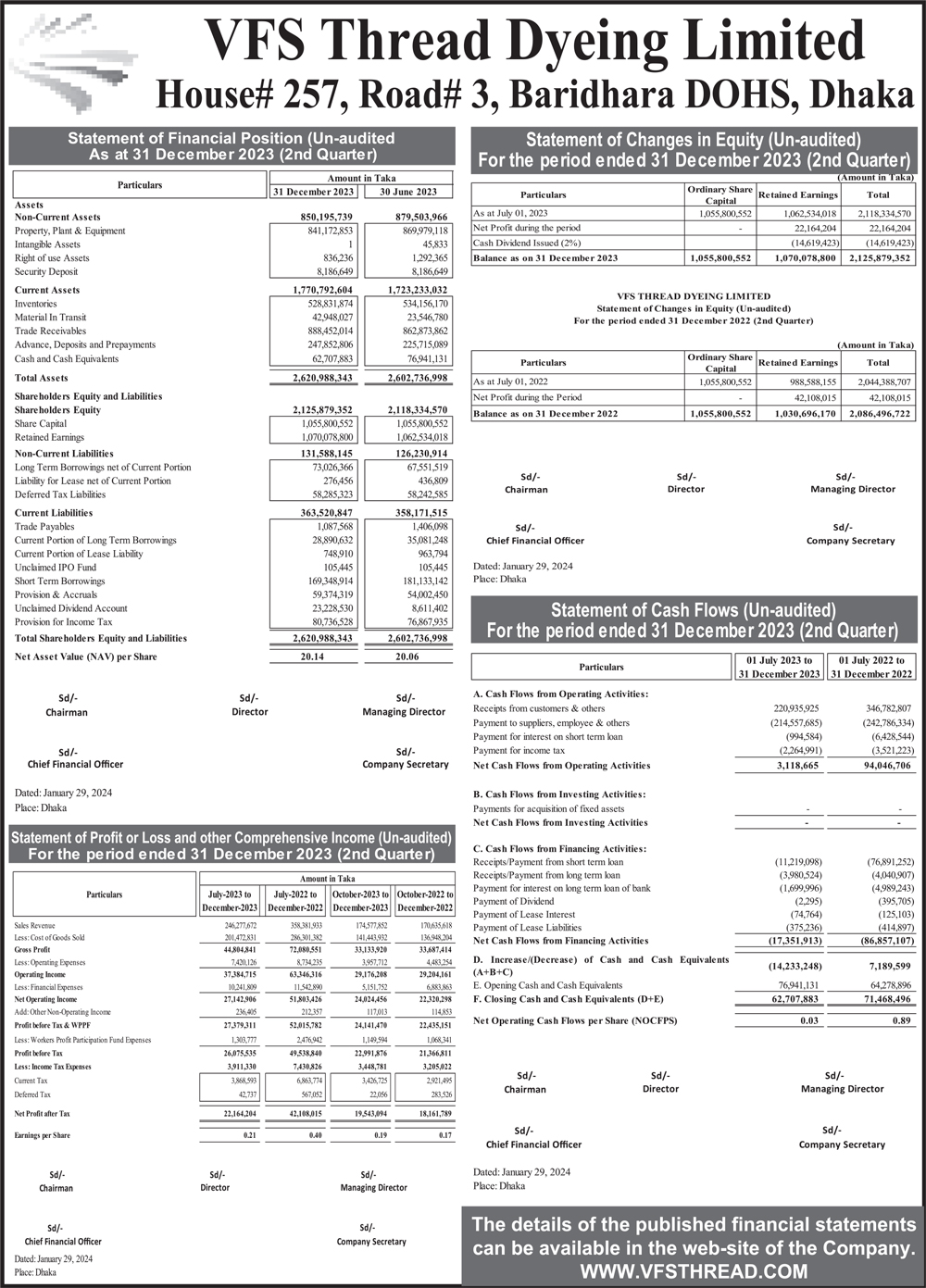 Q2 Financial Statements (Un-audited) of VFS Thread Dyeing Ltd.