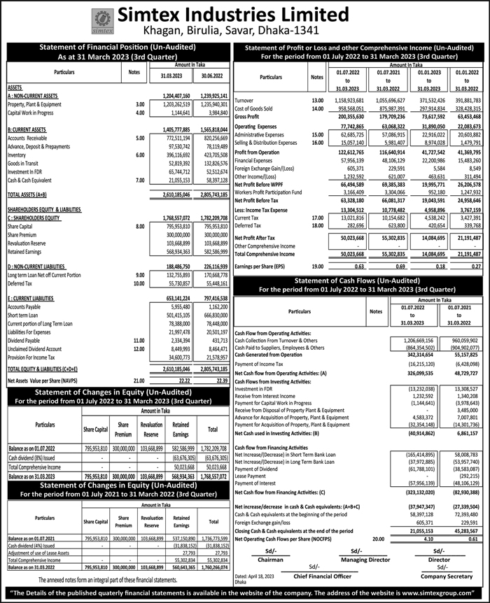 Q2 (Un-audited) Financial Statements of Simtex Industries Limited