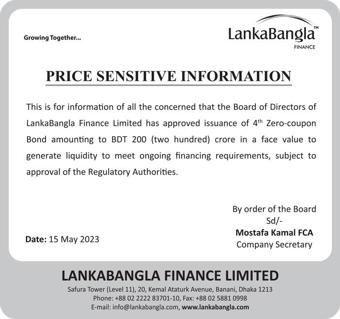 Price Sensitive Information (Zero-coupon Bond) of LankaBangla Finance Limited