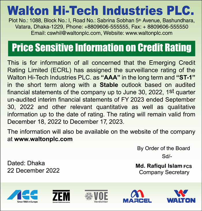 Notification for General Shareholders of Walton Hi-Tech Industries PLC.