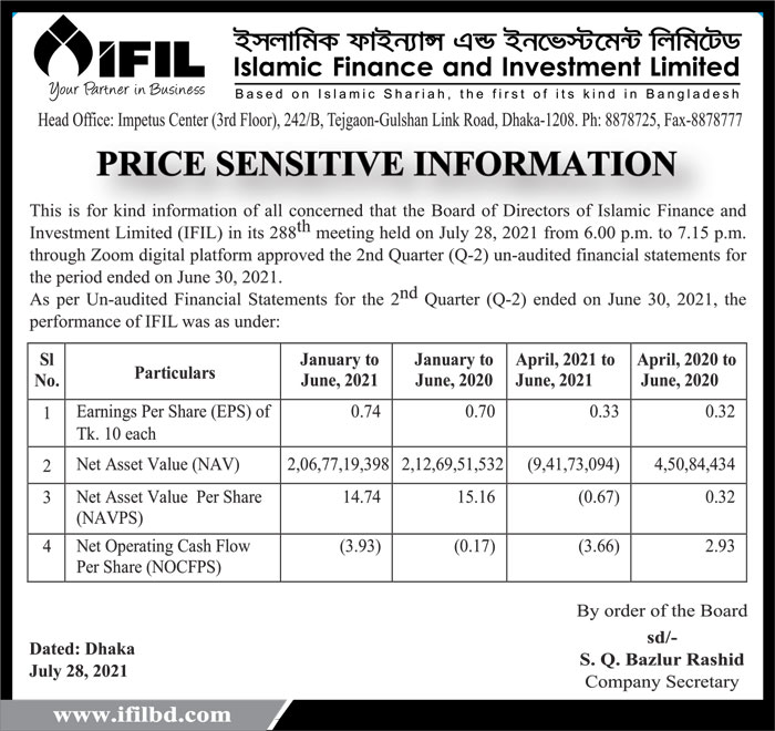 Price Sensitive Information of Islamic Finance & Investment Ltd