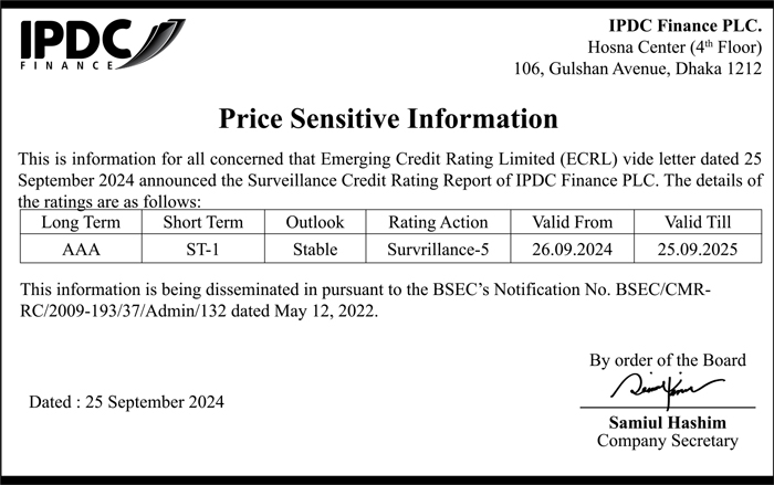 Price Sensitive Information for Credit Rating of IPDC Finance Limited