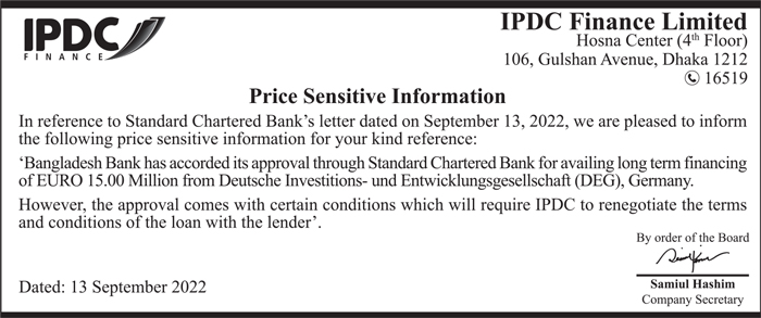 Price Sensitive Information for Credit Rating of IPDC Finance Limited