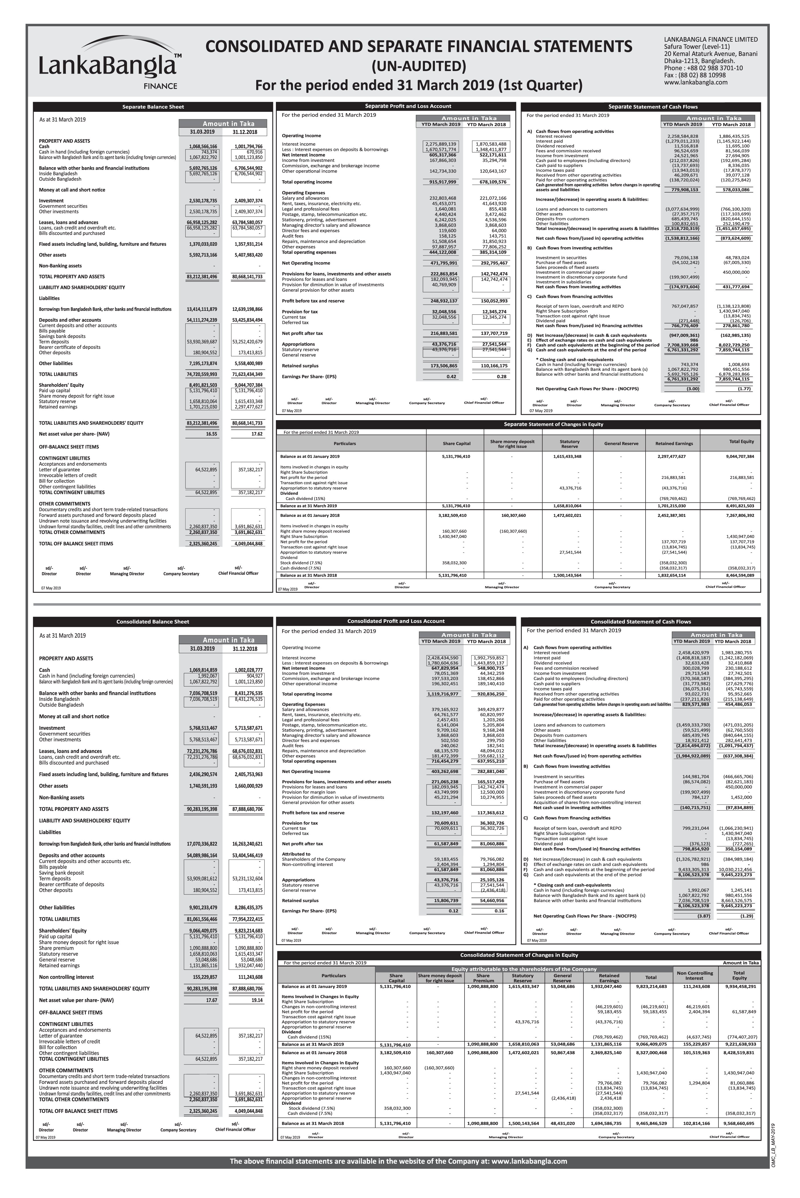 (Q1) Consolidated and separated financial statements of LankaBangla