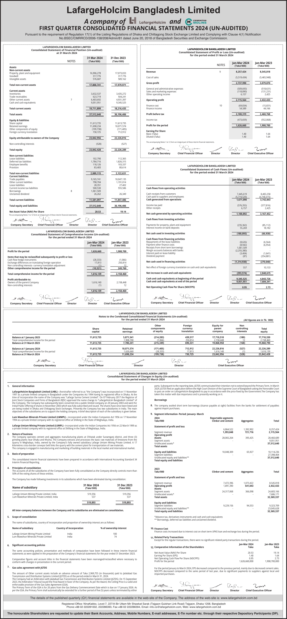 Q1 Consolidated Financial Statements 2024 (Un-Audited) of LafargeHolcim Bangladesh Limited