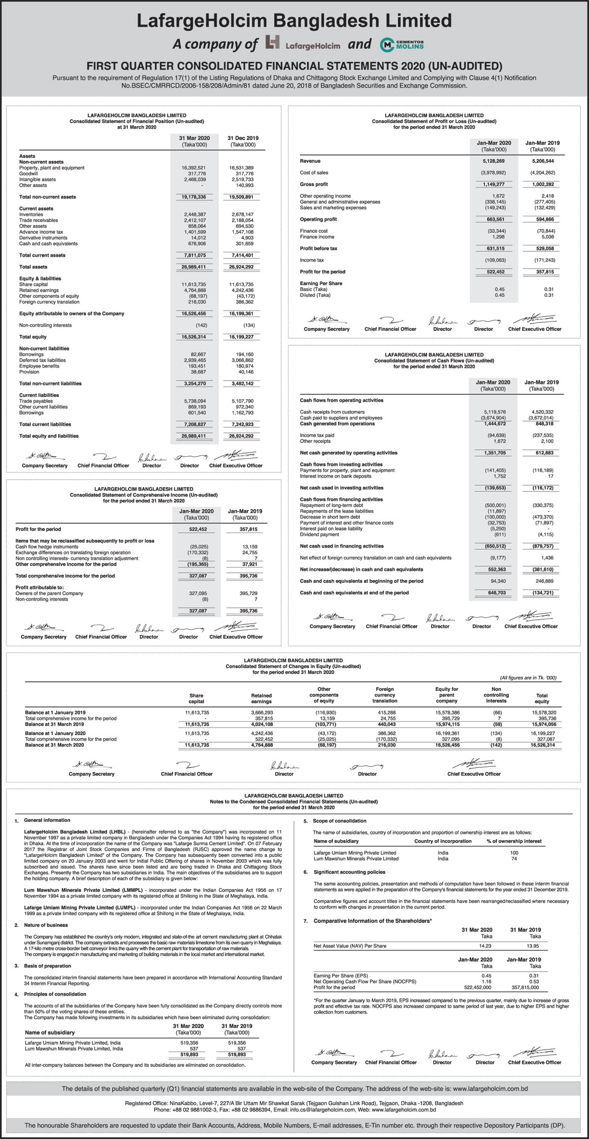Q1 Financial Statements of LafargeHolcim Bangladesh Limited