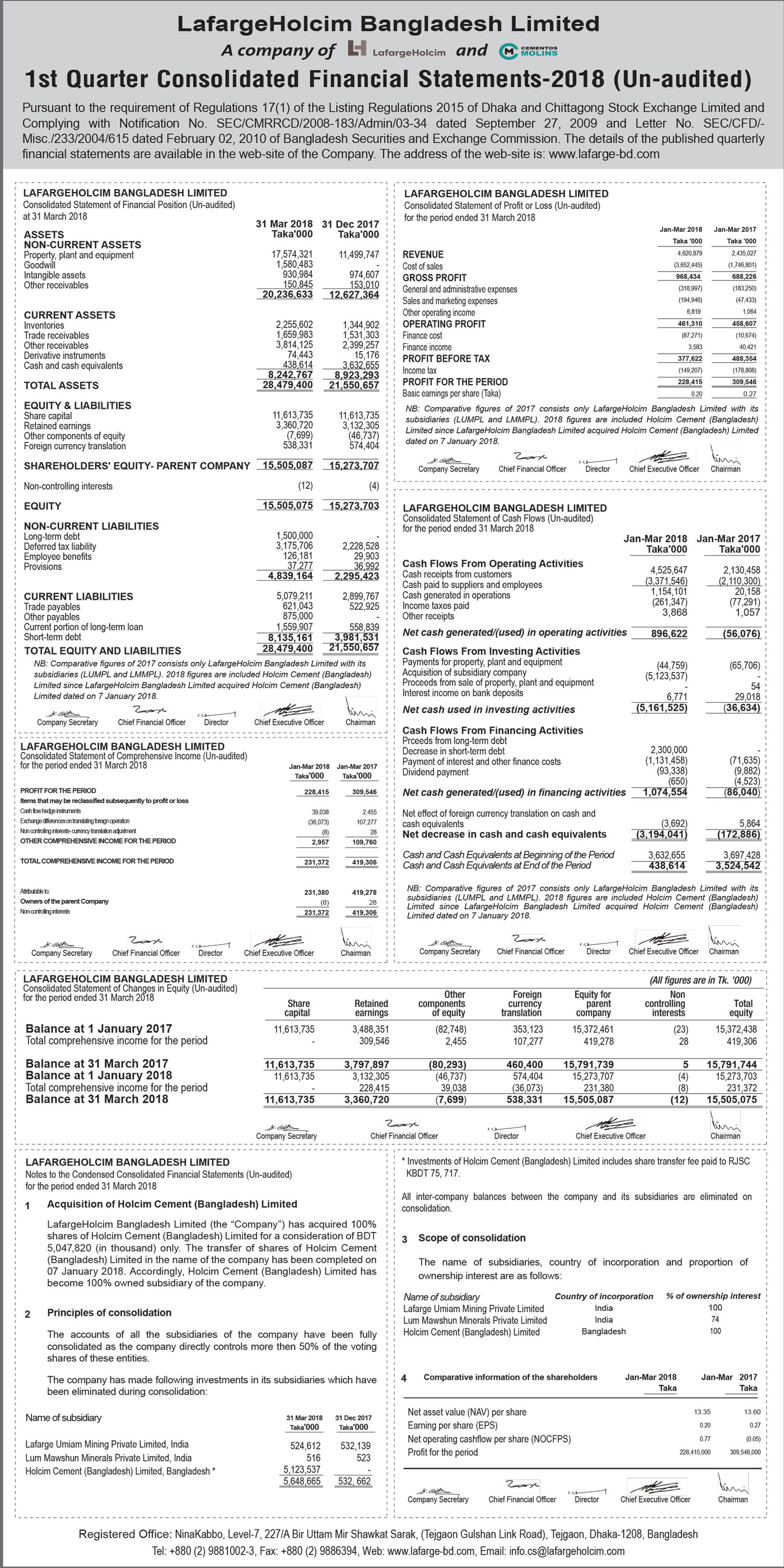 Q1 Financial Statements of LafargeHolcim Bangladesh Limited