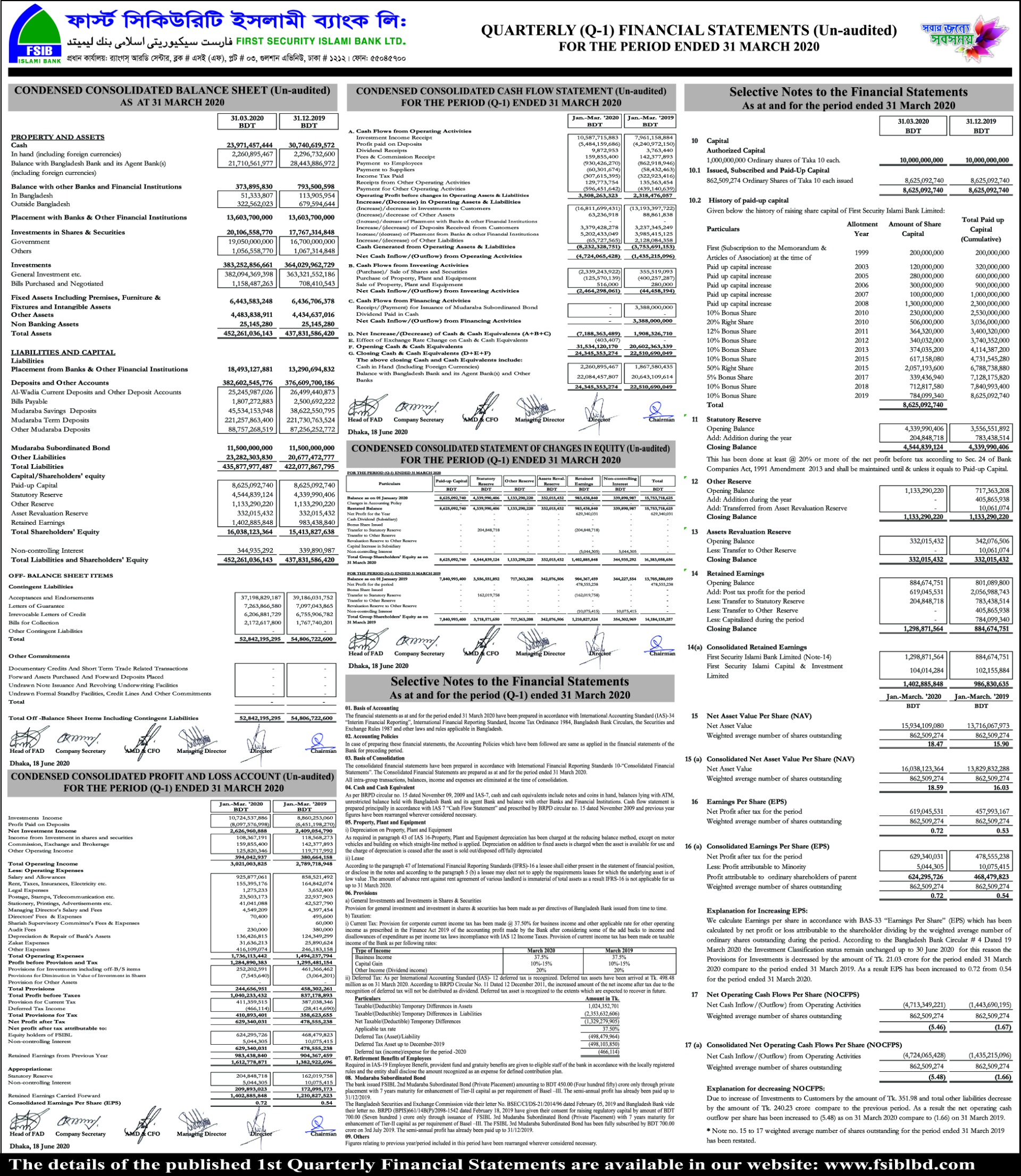 Q1 Financial Statement of First Security Islami Bank