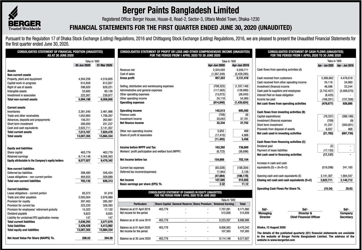 Q1 Financial Statement (Unudited) of Berger Paints Bangladesh Ltd