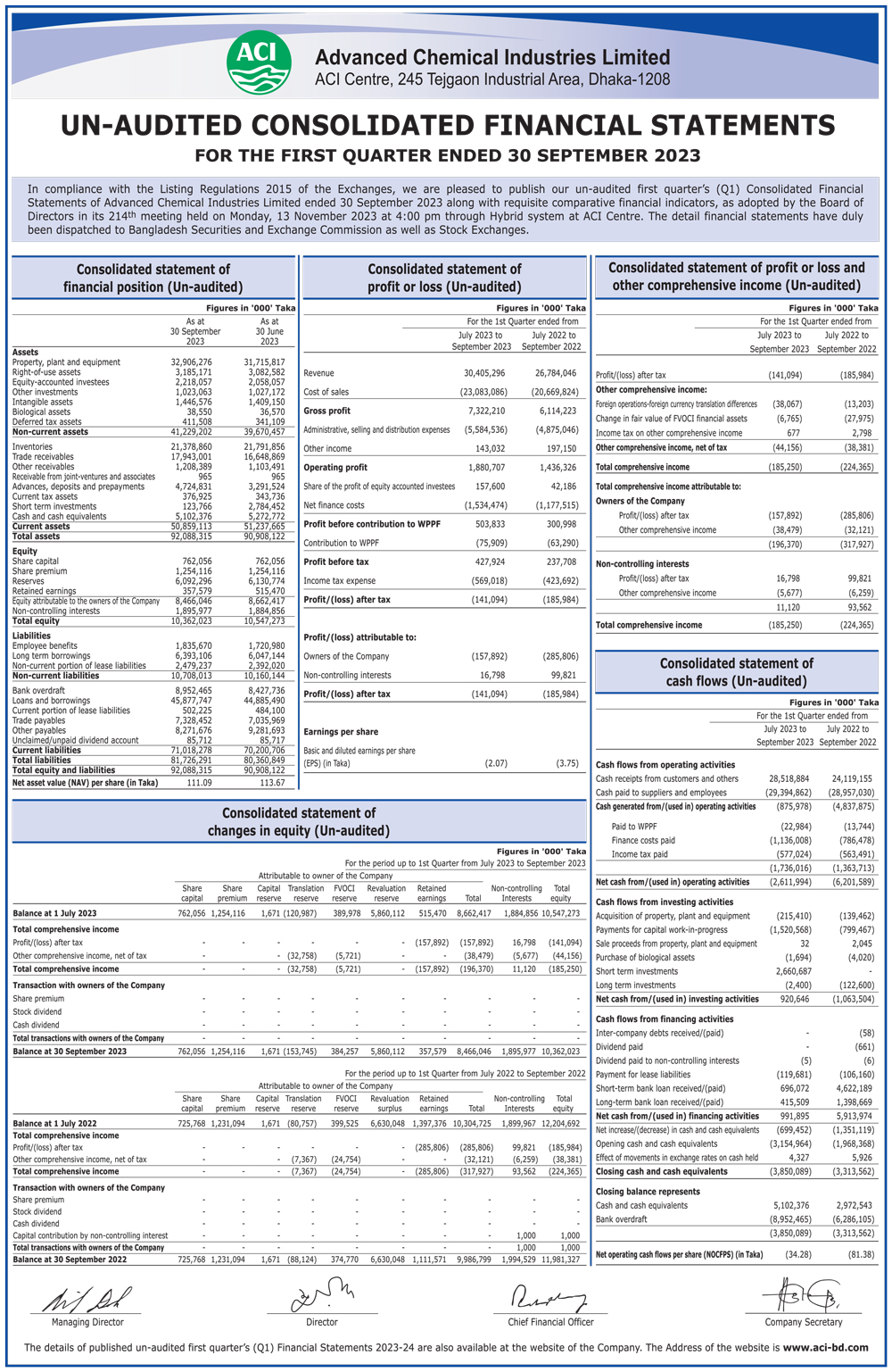 Q1 Financial Statements of ACI Limited