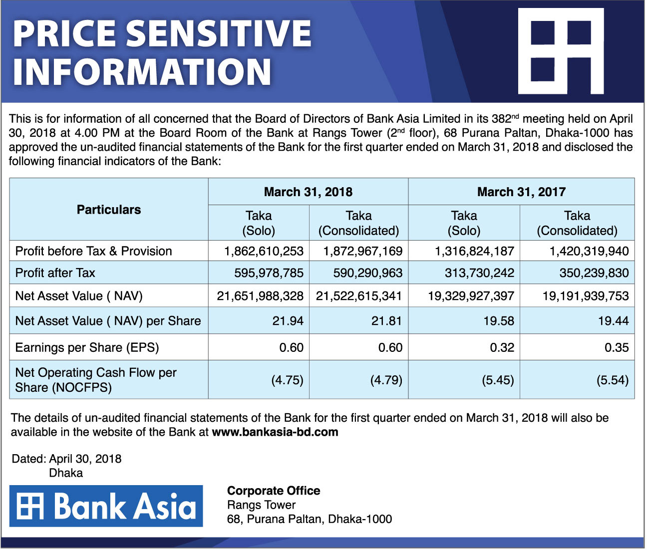 Q1 Financial Statements (Un-audited) of Bank Asia