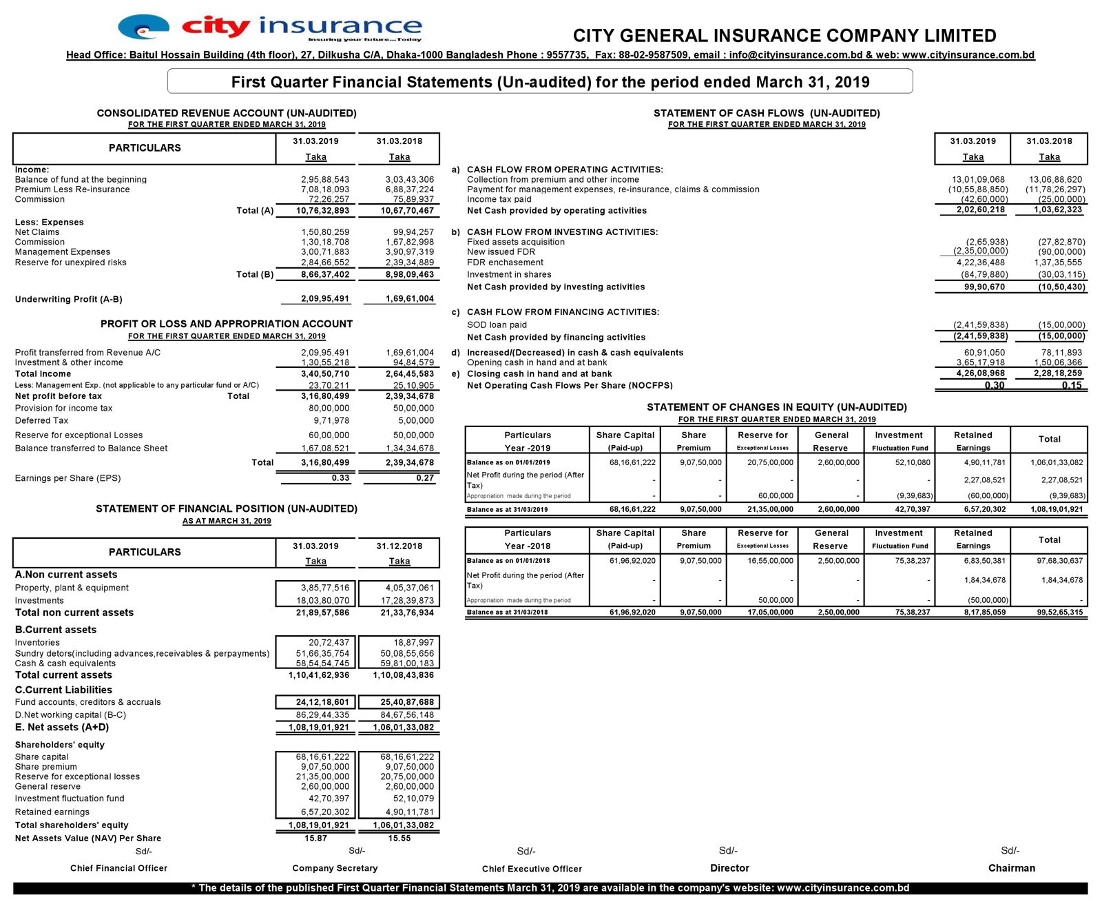 Q1 Un-audited Financial Statements of City General Insurance Company Limited