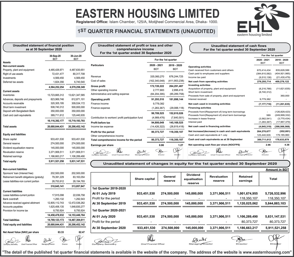 Q1 Financial Statements (Un-audited) of Eastern Housing Limited