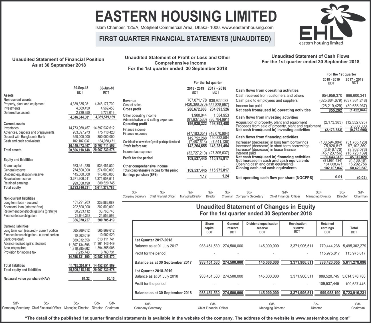 Q1 Financial Statements (Un-audited) of Eastern Housing Limited