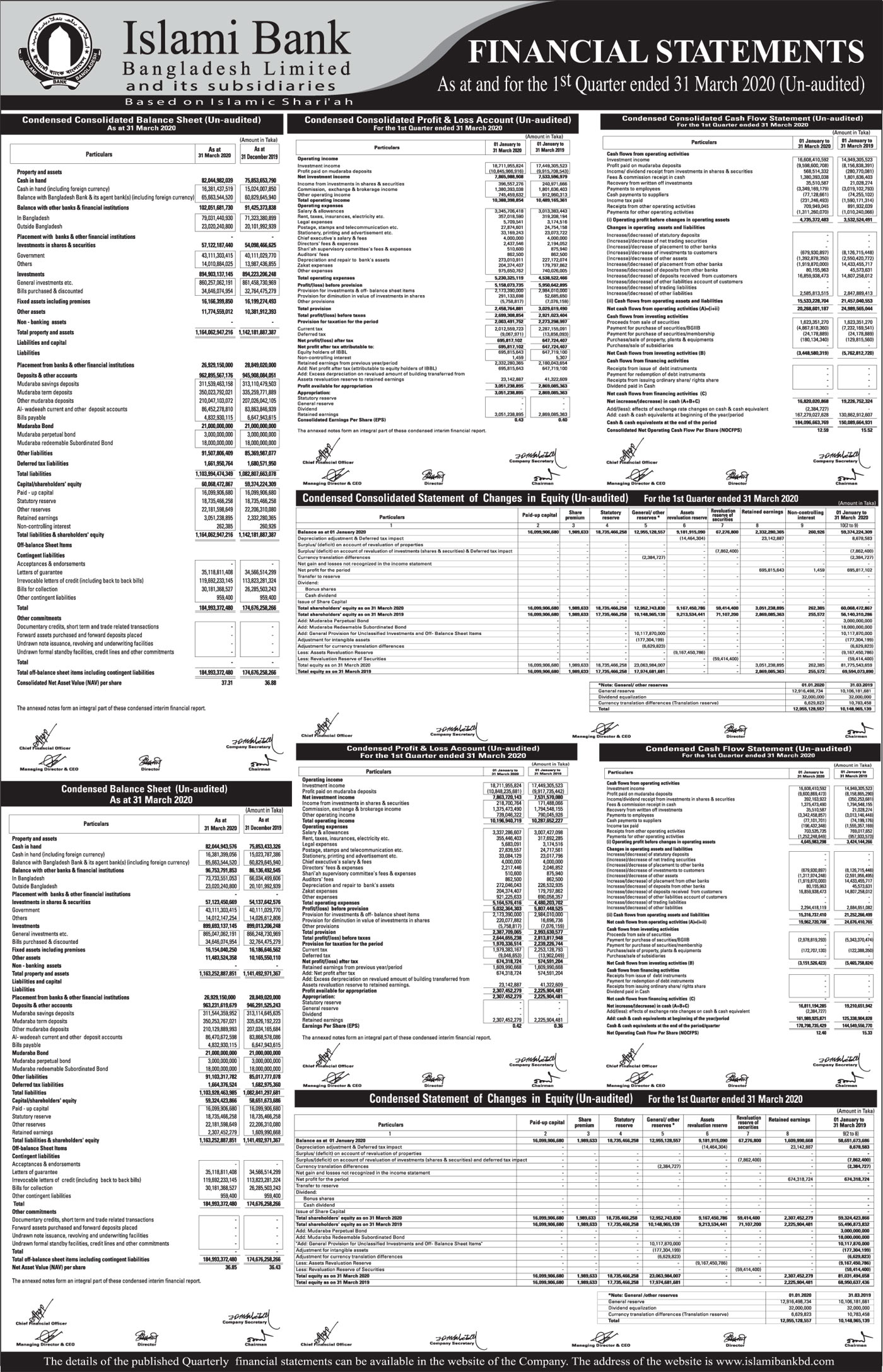 Q1 Financial Statements (Un-audited) of Islami Bank