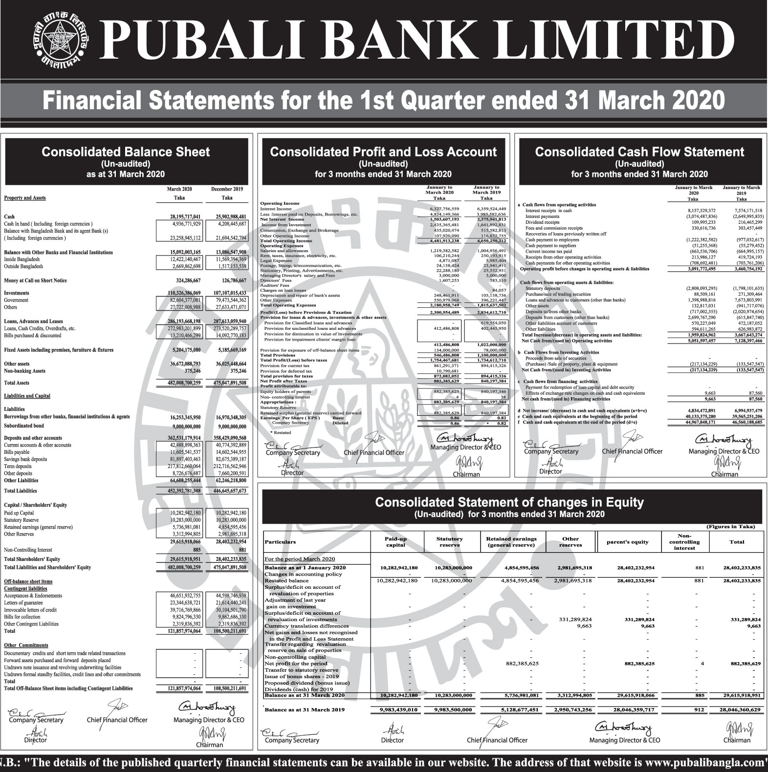 Q1 Financial Statements of Pubali Bank PLC.