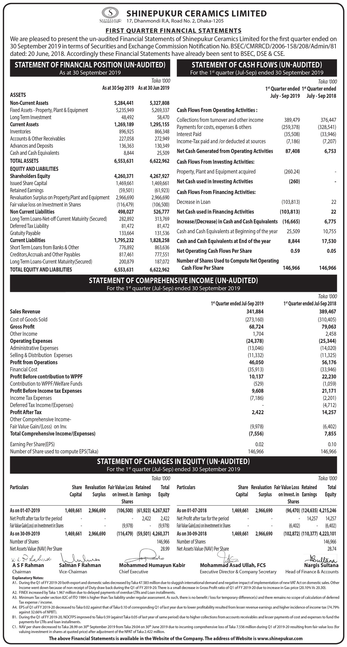 Q1 Financial Statements of Shinepukur Ceramics Ltd.