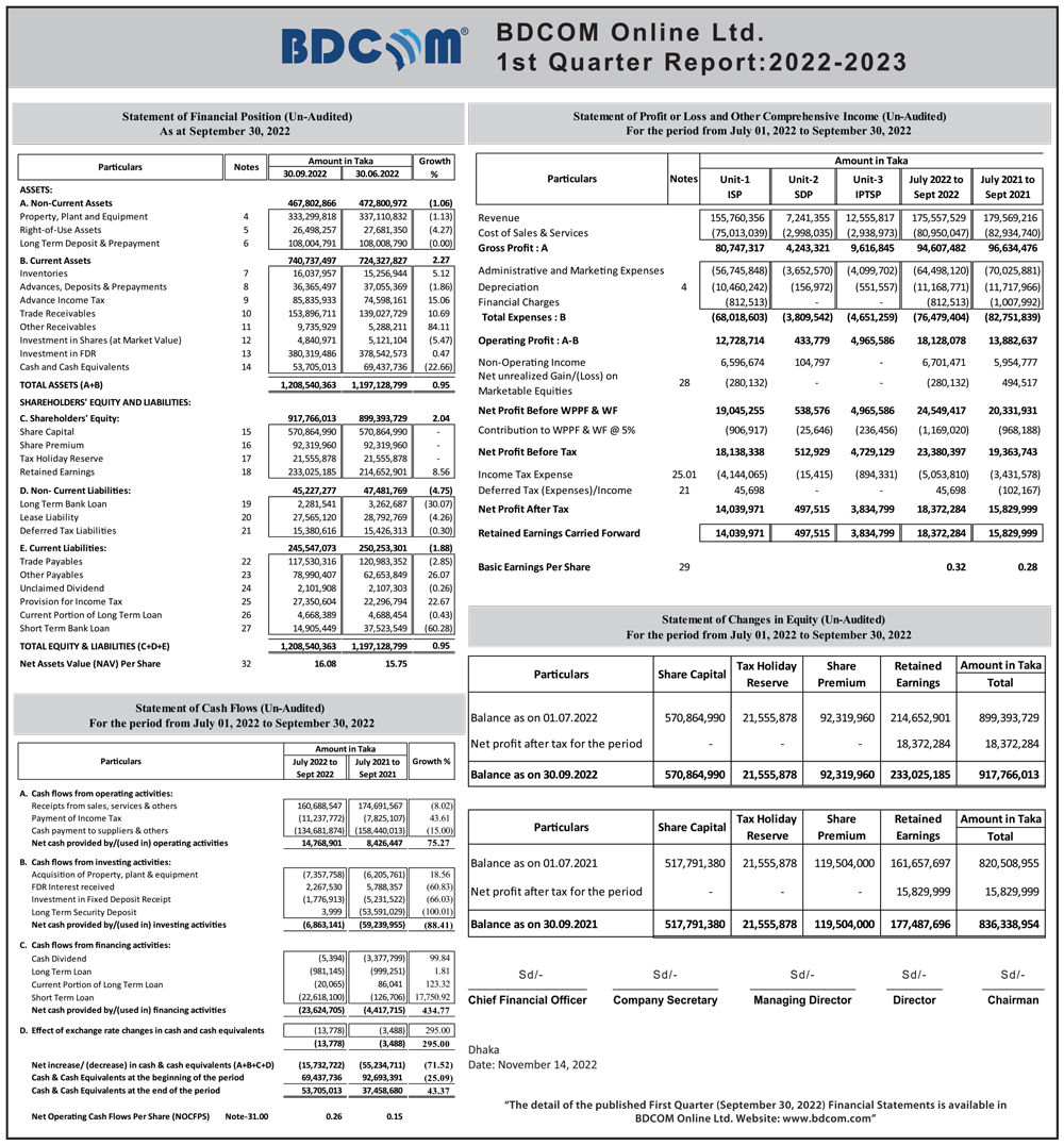 Q1 Financial Statements (Un-audited) of BDCOM Online Ltd