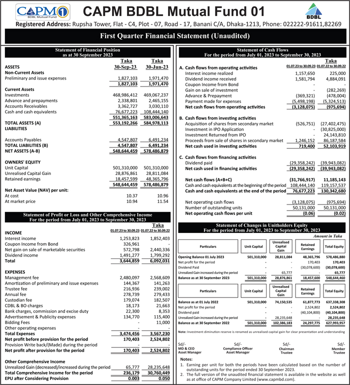 Q1 Financial Statements (Un-audited) of CAPM BDBL Mutual Fund 01