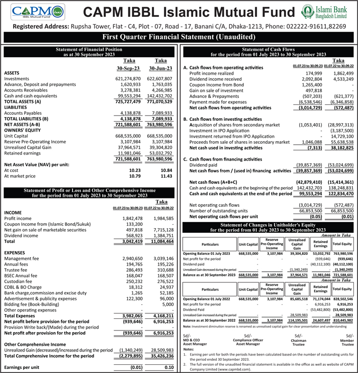 Q3 Financial Statement (Unaudited) of CAPM IBBL Islamic Mututal Fund