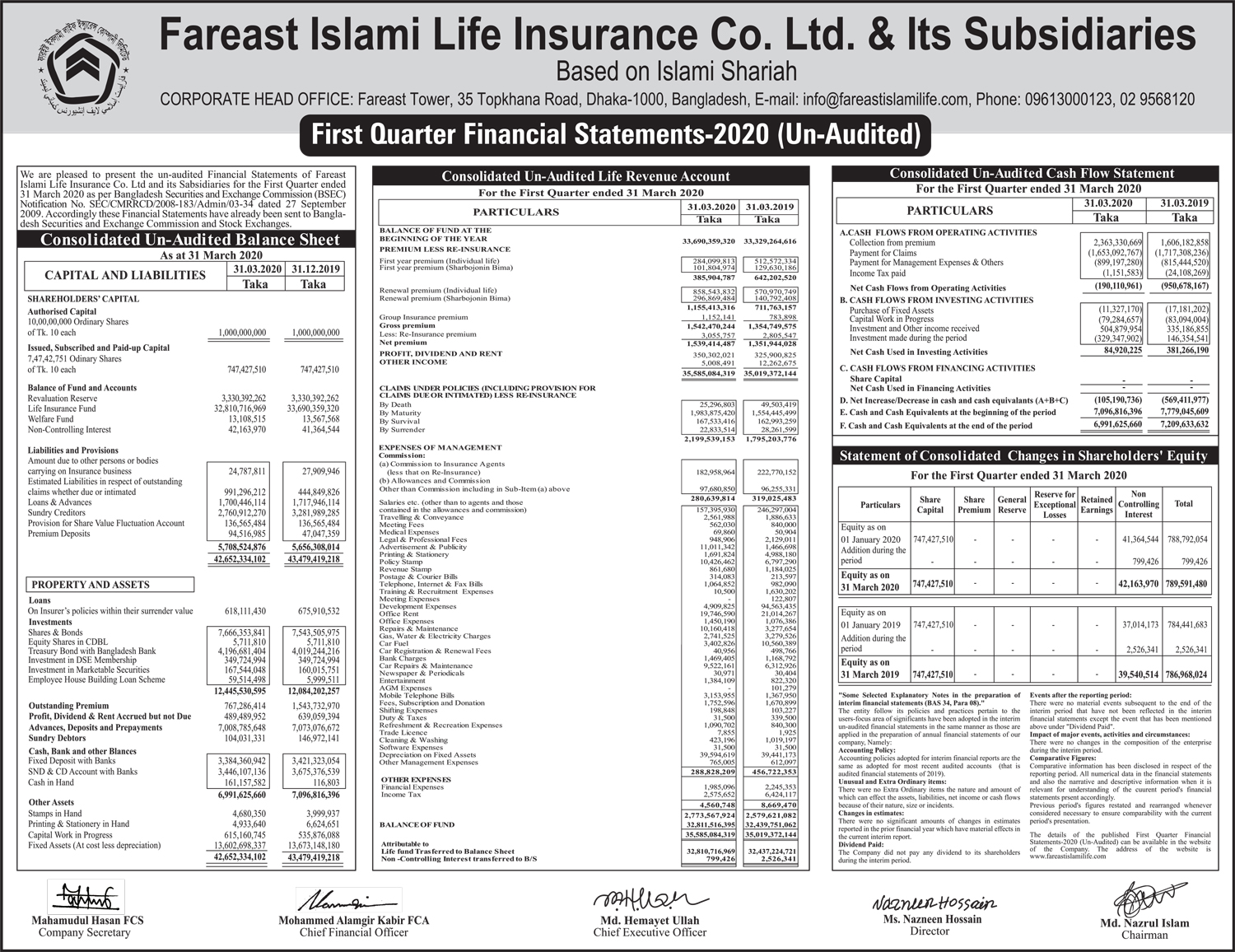 Q1 Financial Statements of Fareast Islami Life Insurance Co. Ltd & Its Subsidiaries