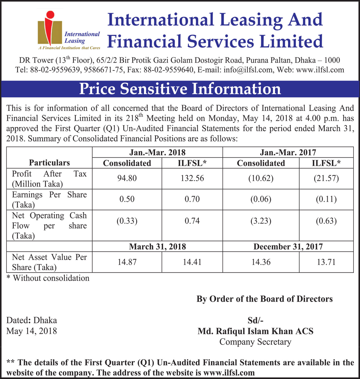 Q1 Financial Statements (Un-audited) of International Leasing & Financial Service Ltd.