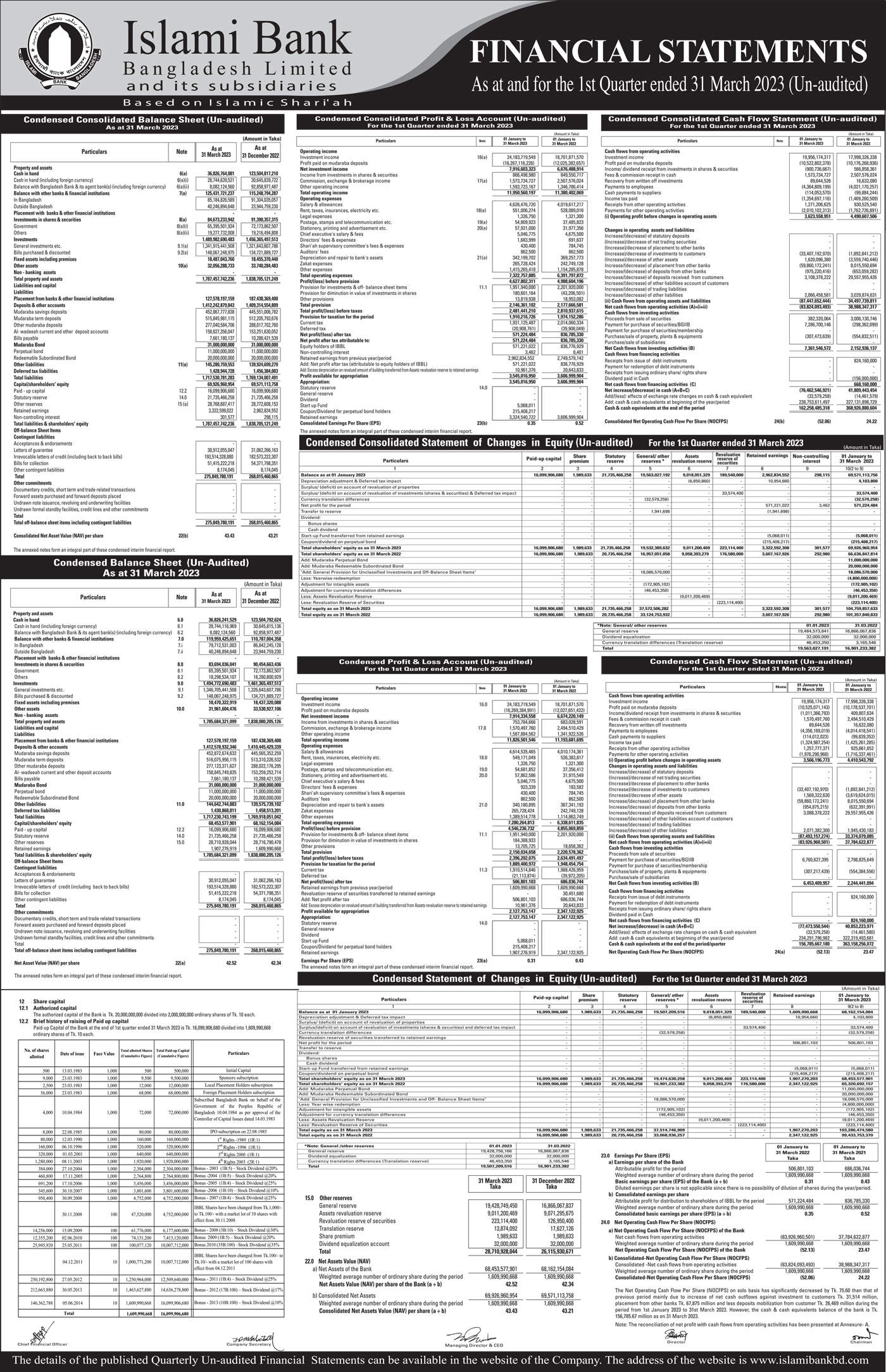 Q1 Financial Statements (Un-audited) of Islami Bank