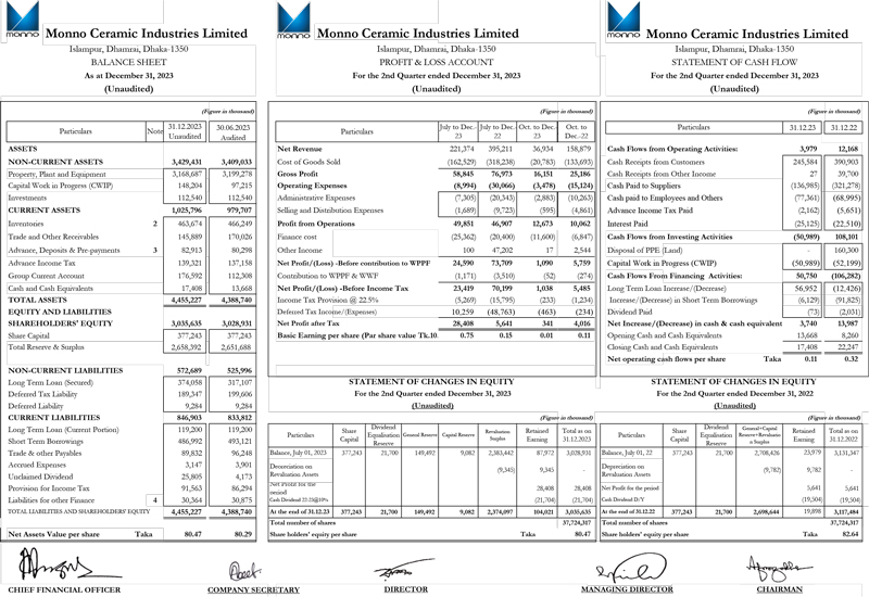 Un-audited Q1 Financial Statements of Monno Ceramic Industries Limited