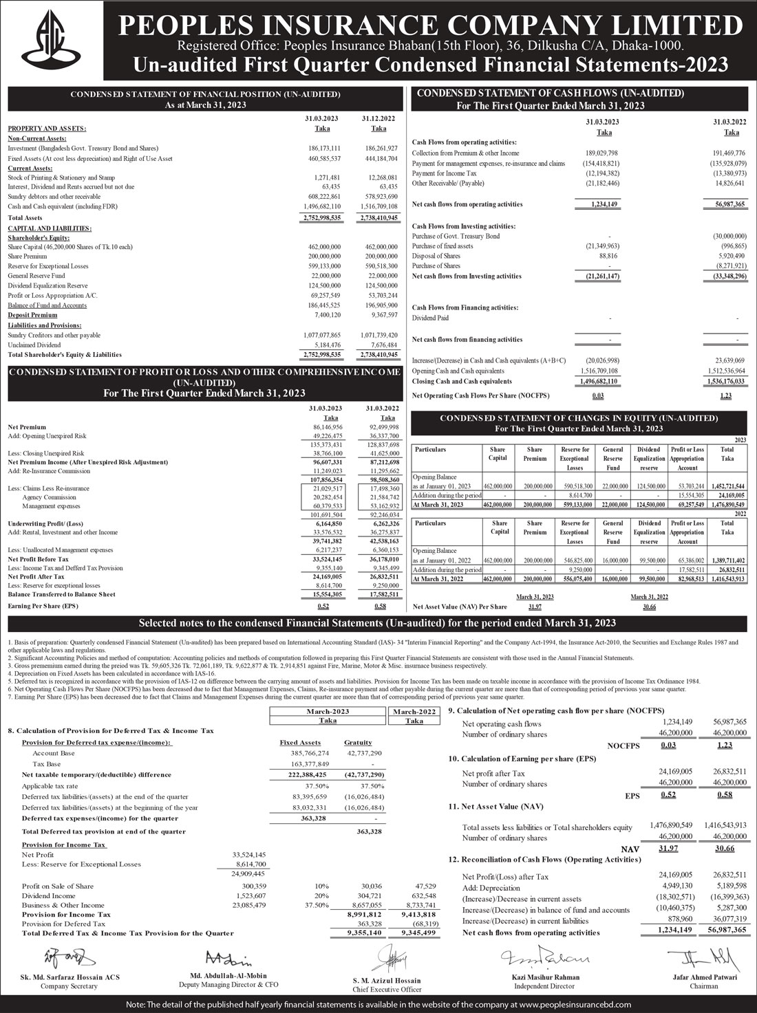 Un-audited Q1 Financial Statements of Peoples Insurance Company Limited