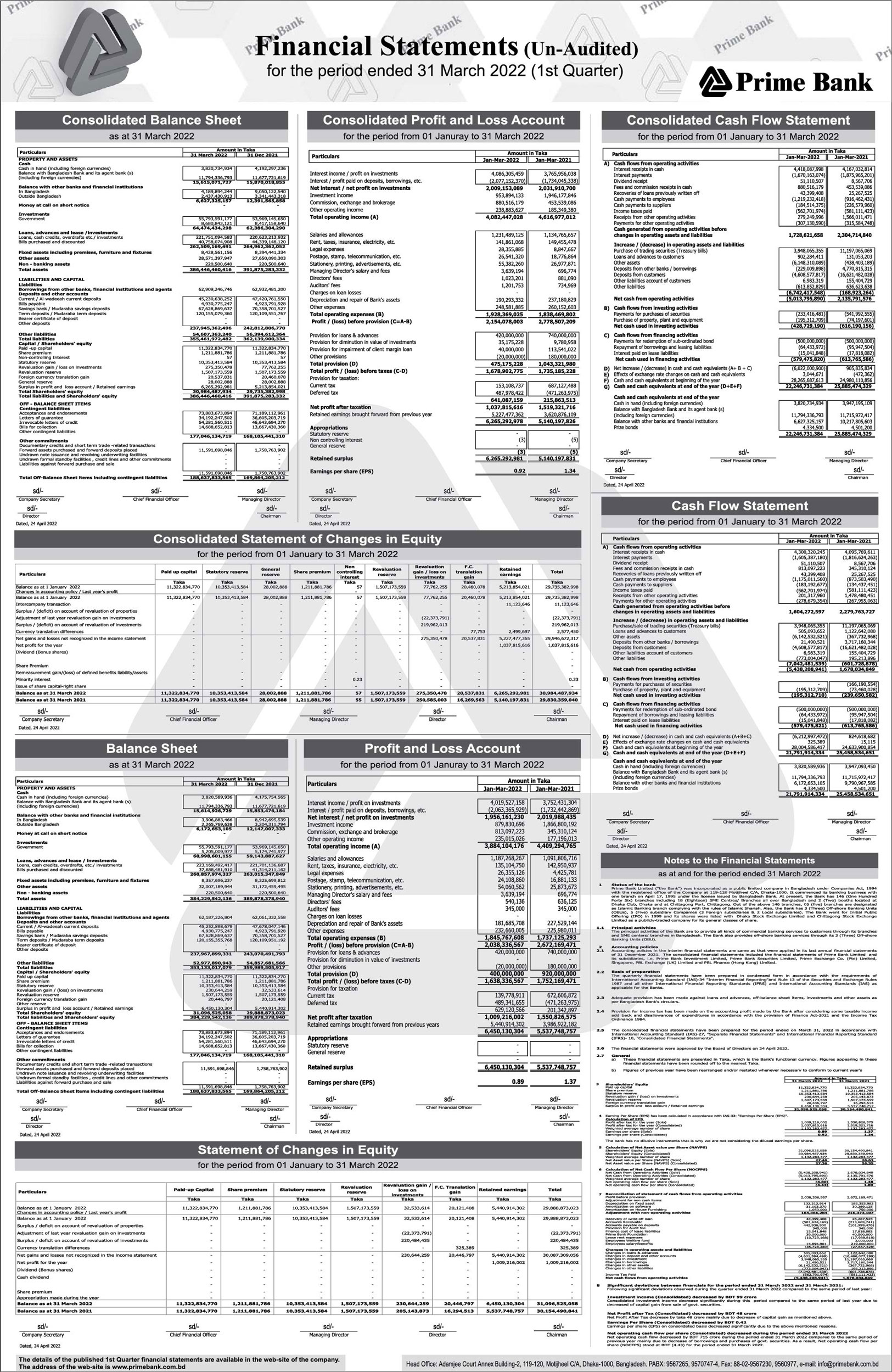 Q1 Financial Statements (Un-audited) of Prime Bank