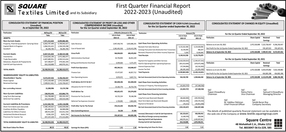 Q1 Financial Statements of Square Textile Ltd