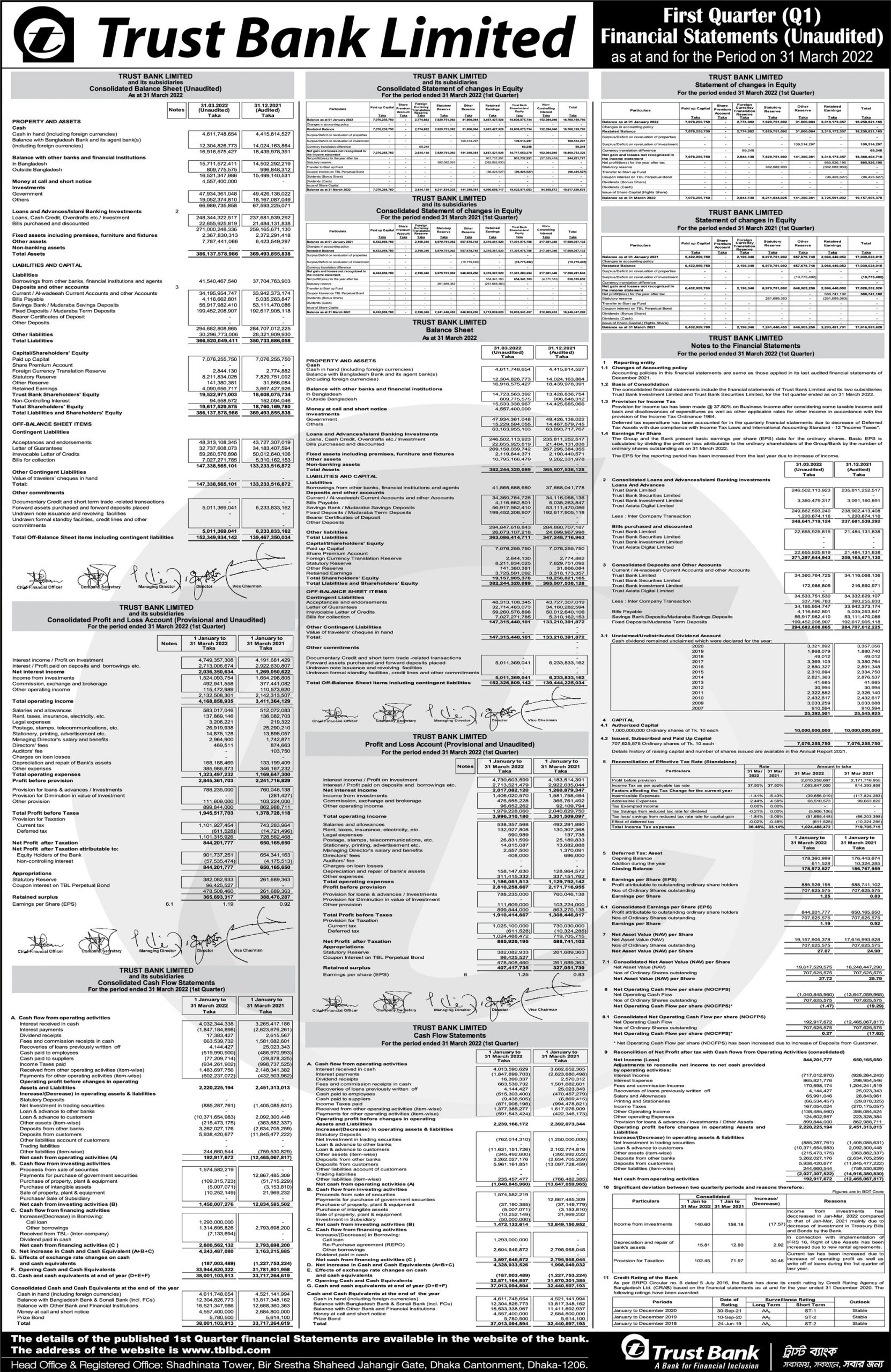 Q1 Financial Statements (Un-audited) of Trust Bank Limited