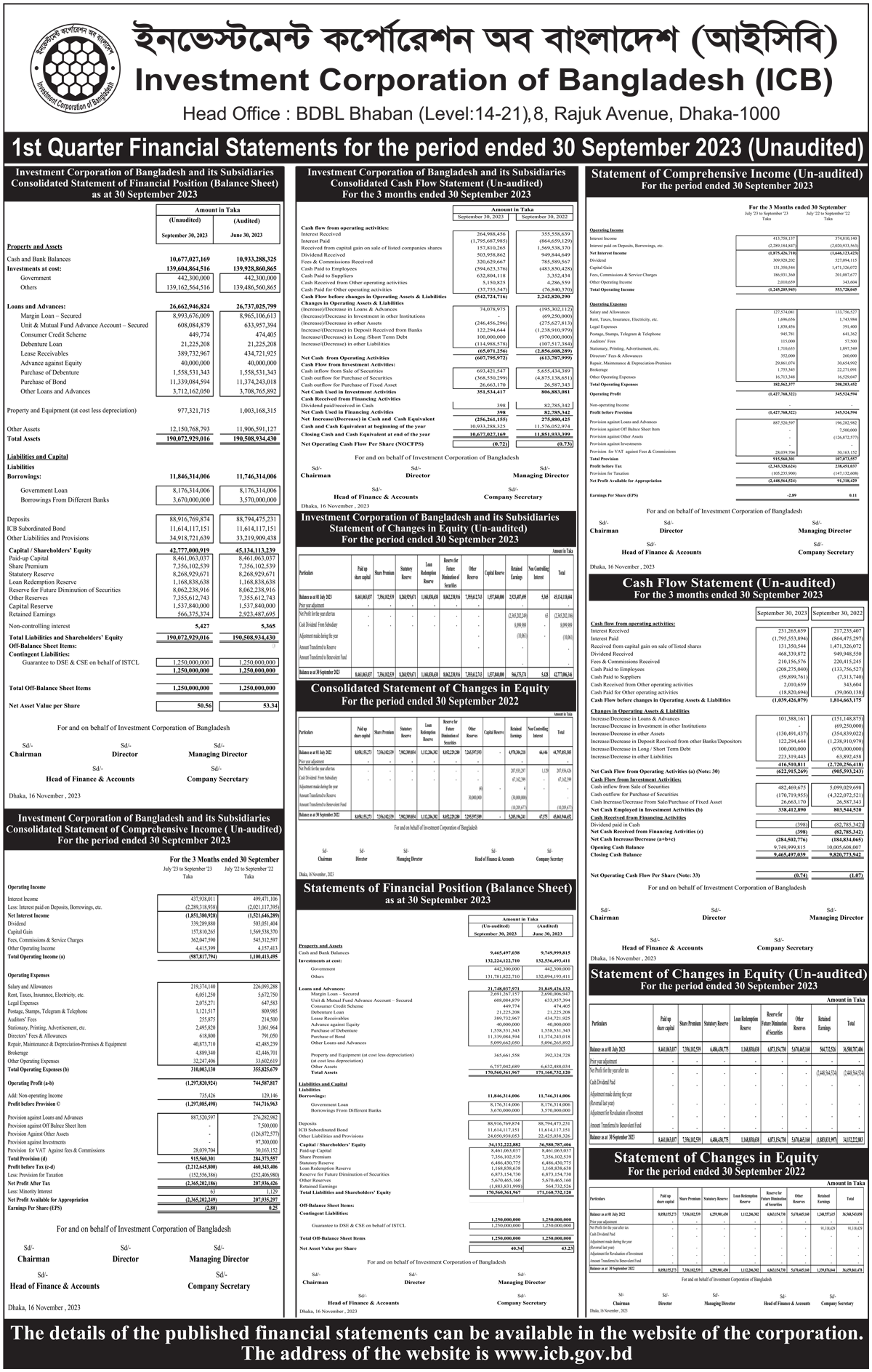 Q3 Un-audited Financial Statements of ICB