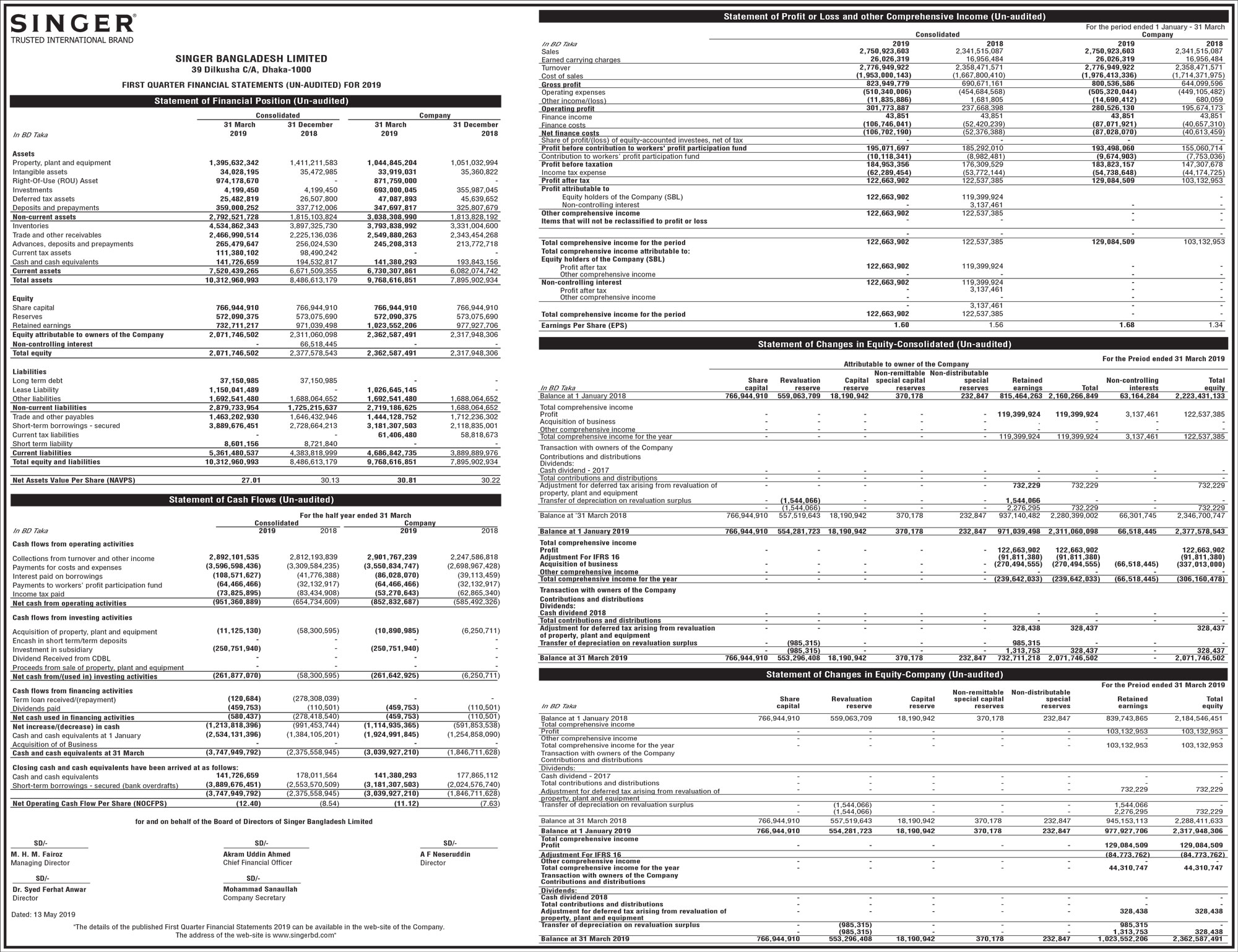 Q1 Financial Statements (Un-audited) of Singer Bangladesh Limited