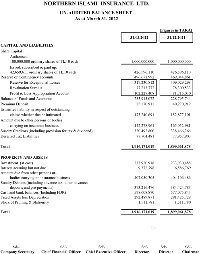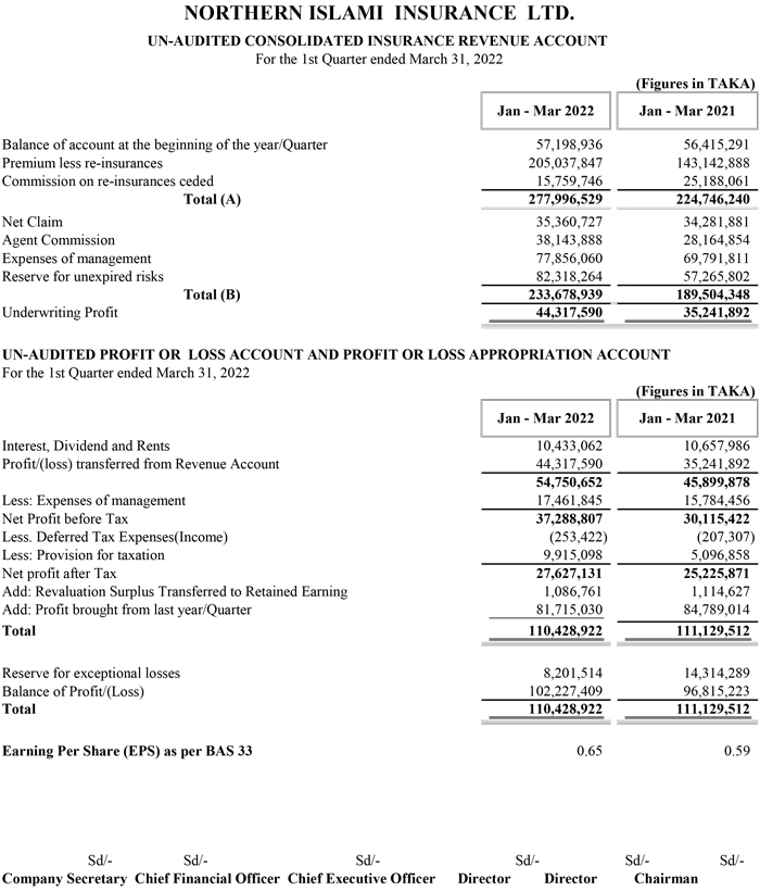 Q1 Finanical Statements of Northern Islami Insurance Ltd.