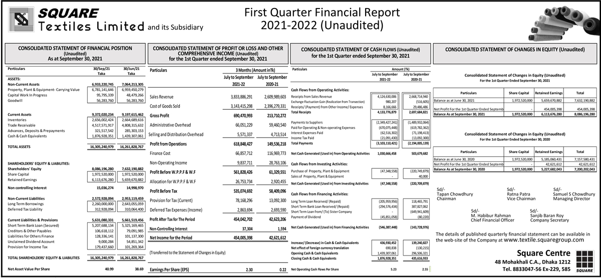 Q1 Un-audited Financial Statements of Square Textile PLC