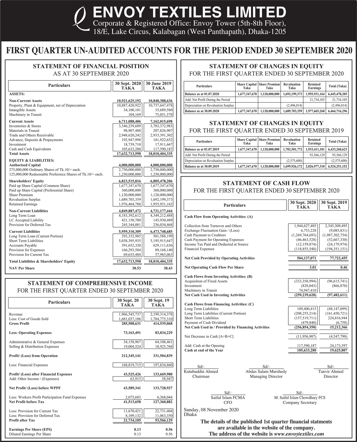 Q1 Un-audited Financial Statements of Envoy Textiles Limited